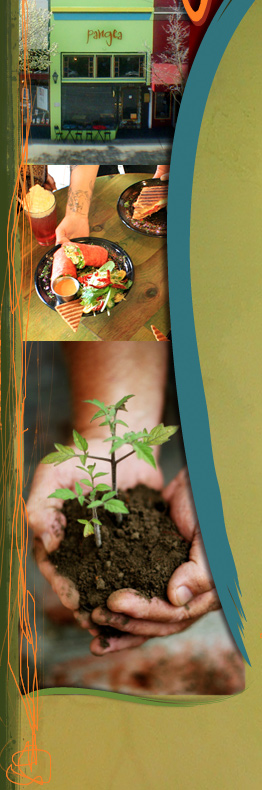 1) Right Consumption: Pangea makes conscious purchasing decisions. We buy only free range and hormone-free meats and favor local, organic growers. We support fair trade and, environmentally correct companies.